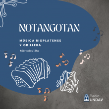 Notangotan es un programa temático que aborda la cultura, fundamentalmente musical de Buenos Aires y la región que nos abarca, la Cuenca del Río de la Plata, hacedora del género que nos convoca, el tango y el carnaval. Para conocer la cultura rioplatense y orillera.